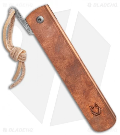 This Urban Husky has a copper handle and a Damascus blade. Urban Husky is hand made.
