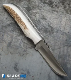 - Hand rubbed satin Bohler M390 steel blade with a sharpened clip point and saw tooth spine.