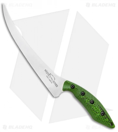 This Traditional 8.5″ Fillet knife has a green and black G-10 handle for extreme durability and includes the White River “Stay Put” sheath.